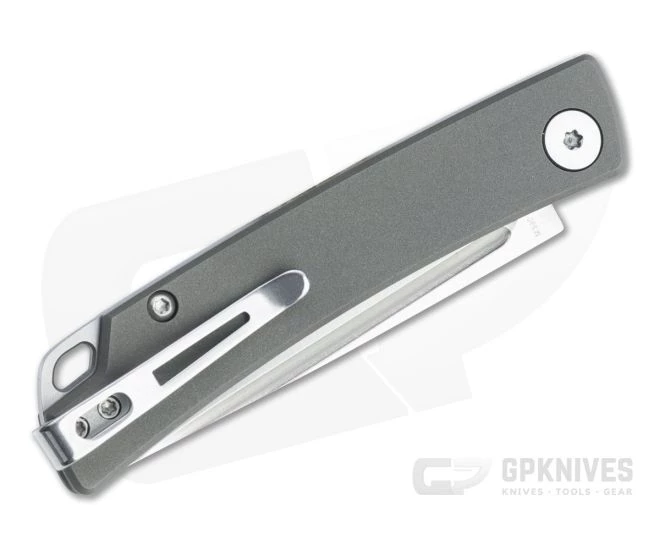 Handle: Blasted matte gray titanium handle scales are stylish and comfortable with a fine tactile feel. The scales house the blade and a solid stainless steel back spring provides delivering snappy slip joint operation. An exposed portion of the spacer has a milled hole for lanyard attachment.