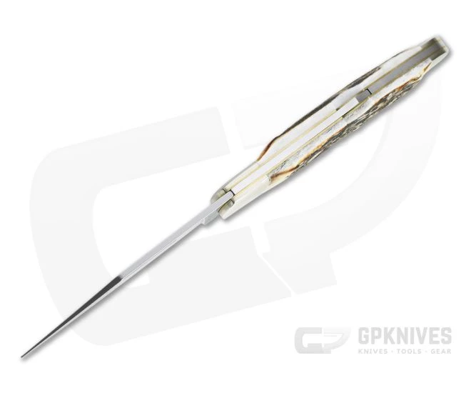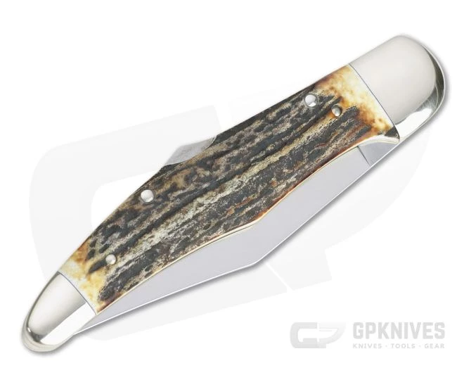 Handle: Dual, brushed nickel silver bolsters and stag scales are mounted to brass liners with stainless steel pins offering a rugged, classic handle. This is a large and comfortable handle built for serious use while retaining a beautiful aesthetic. The front scale is embellished with the Boker Tree Brand Shield. A classic back lock provides smooth operation and secure lockup.