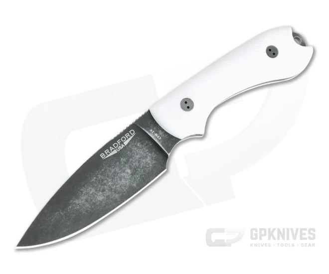 The Bradford Guardian3 is a compact, American made, everyday carry fixed blade that makes a perfect belt-carry companion for daily urban or outdoor use. Built to replace the modern EDC folding knife, the Guardian3 has a compact size that is easy to carry while still providing plenty of edge for your cutting needs. This GPKnives Exclusive version of the Guardian3 comes with a fully flat ground, Nimbus finished CPM 3V blade and micro textured 3D White G10 handle scales.
