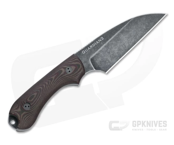 The Bradford Guardian3 is a compact, American made, everyday carry fixed blade that makes a perfect belt-carry companion for daily urban or outdoor use. Built to replace the modern EDC folding knife, the Guardian3 has a compact size that is easy to carry while still providing plenty of edge for your cutting needs. This Limited Edition Wharncliffe version comes with a Nimbus finished M390 blade and 3D Chocolate/Red Richlite handle scales.