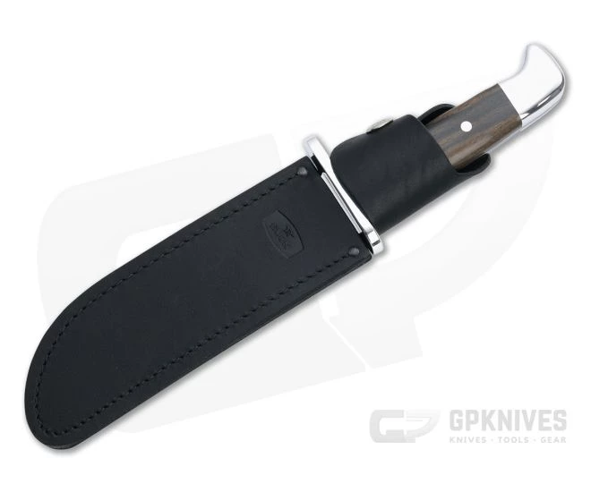 Blade: Known as a straight-back Bowie, the blade has a robust spine with a subtle swedge at the tip for added durability with a thick spine and razor sharp hollow grind for balanced performance. The Bos heat treated 420HC stainless steel resists corrosion from the elements and stands up to hard use while being easily sharpened in the field. This blade will chop, slice, skin and pierce whatever your heart desires. The design is classic with a gorgeous satin finish and standard blade tang stamps.
