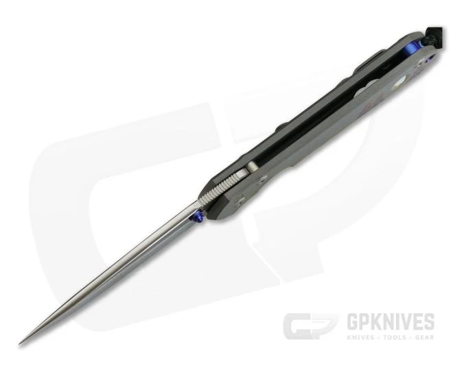 Blade: The Small version gives its user 2.87 inches of polished, shaving sharp cutting edge built from premium CPM-S35VN steel. This steel is tough, wear resistant and relatively easy to re-sharpen and maintain. It is hollow ground for supreme sharpness and fully usable for day to day. A thumb ramp on the spine has perfect jimping, nearly an inch and perfect placement. The rest of the spine is crowned, smooth and polished. This version features a single Blue titanium thumb lug opener allowing the user to open the blade from the front side. It operates on a pivot system using oversize bronze washers with grease-filled pockets for smooth, no friction operation. Lock up is always solid and reliable.