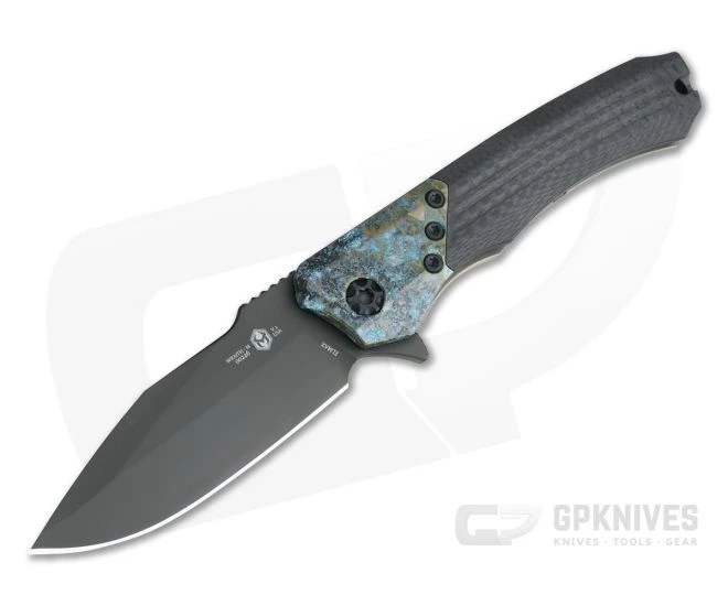 The Wraith Flipper from Heretic is a manual version of their versatile automatic knife. Built with an ingenious one piece integral carbon fiber chassis and under mounted titanium frame lock the manual version has a bearing driven flipper deployment as fast as most autos. This version comes with a black DLC coated, plain edge, Elmax clip point blade, Chemtina brass bolster, bronze titanium frame lock and integral carbon fiber handle.