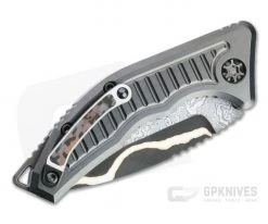 The Handle: The same Gen 1 stylings you love on just a bit larger platform. The finger grooves, shape and texturing fit the hand like a glove. It’s a harmoniously ergonomic experience designed with comfort in mind. This version is dressed in black G10 secured to a titanium liner with a Battle Blue digi cam titanium frame locker on the back. All the standard Hinderer features are present from the Lockbar Stabilizer to open construction and a Ti pocket clip that can be flipped to tip up carry. #055 is engraved just below the lockbar cutout.