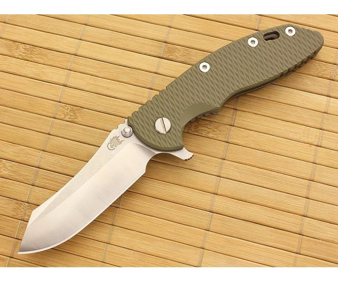 The Hinderer Knives XM-18 3.5″ Gen IV 2016 Limited Edition Skinner 2-Tone Satin/Tumbled Blade with OD Green 3D textured G10 is a precision-crafted hard-use tactical folder. It features a utility skinner style blade with integral flipper for easy opening when it matters most. As the medium sized model in the Hinderer family, the XM-18 3.5 was designed to fit most hands comfortably and has a reasonable blade size to handle most any task. Ease of opening and closing one-handed combined with a reliable lock system were targets that have been achieved with the XM-18. Brand new directly from the Hinderer Ranch.
