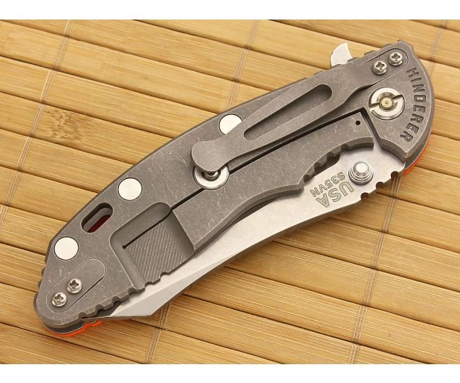 The Hinderer Knives XM-18 3.5″ Gen IV 2016 Limited Edition Skinner 2-Tone Satin/Tumbled Blade with Orange 3D textured G10 is a precision-crafted hard-use tactical folder. It features a utility skinner style blade with integral flipper for easy opening when it matters most. As the medium sized model in the Hinderer family, the XM-18 3.5 was designed to fit most hands comfortably and has a reasonable blade size to handle most any task. Ease of opening and closing one-handed combined with a reliable lock system were targets that have been achieved with the XM-18. Brand new directly from the Hinderer Ranch.