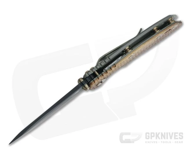 Handle: Full titanium frame lock and liner have a matching Battle Green Finish (anodized green Working Finish) that is rugged and hides wear well while having a classic visual appeal when paired with the handsome Textured Walnut scale. Bronze Hardware and standoffs create one solid, easy to maintain package. A forward choil, strategically placed jimping and an ergonomic handle design deliver security and control during use. The Hinderer Lockbar Stabilizer delivers added performance. Serial #V0579.