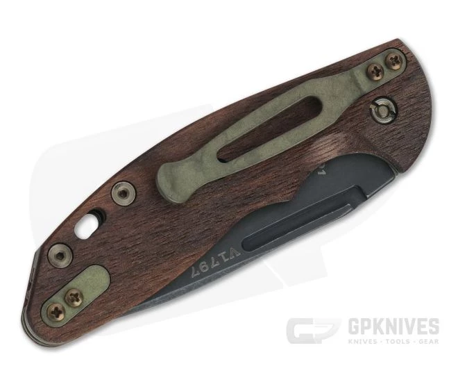 Handle: Full titanium liners have a matching Battle Green Finish (anodized green Working Finish) that is rugged with a classic visual appeal paired with the handsome Smooth Walnut scales. Made from stainless steel, the back spring is working finished and chamfered and offers a solid slip joint operation as well as protecting the blade when closed. Bronze anodized titanium hardware rounds out the construction.
