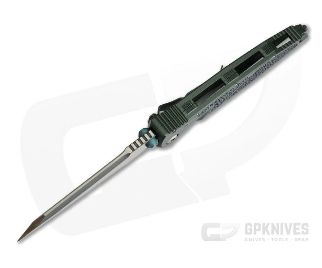 Marfione Custom Knives brings you the Socom Elite manual folder with their new Warcom Wharncliffe blade profile. This high-style custom is still capable of some serious use but offers enhanced aesthetics for the collector. This version has an American, CTS-204P blade with Bronzed Two-Tone DLC Apocalyptic Finish, Olive Drab anodized handles with Stingray Skin inlays and Satin Bronzed Two-Tone DLC finished hardware. S/N 004.