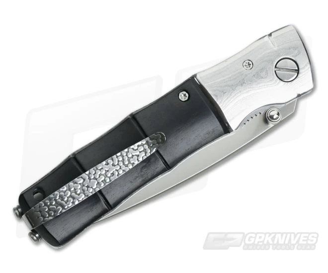 Handle: Stainless steel liners support handsome, Ebony wood handle scales contoured to look and feel like Bamboo. The scales are fit perfectly to gorgeous Damascus steel bolsters for a truly high-class look and feel. The liner lock mechanism delivers reliable lockup and smooth operation.