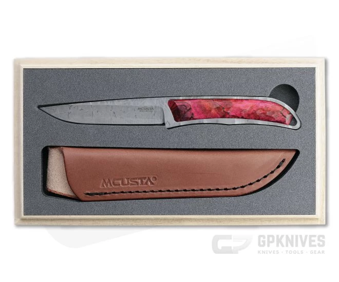 Mcusta’s Platinum Label collection features limited edition knives with top tier materials, precision construction unique hand finishing techniques. Blending traditional Japanese craftsmanship with modern performance and materials, the Platinum Label Slim Line fixed blade offers a truly unique piece for your collection. This Mcusta Platinum Label knife is limited to 90 individually serialized pieces and has a Red stabilized wood handle inlay. S/N – 079