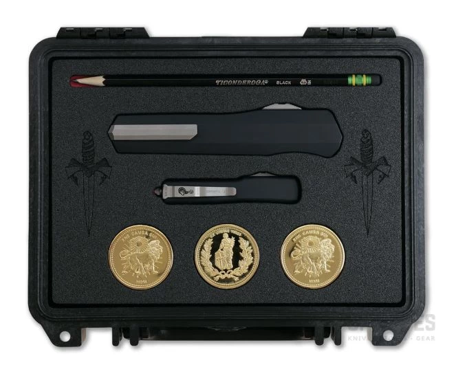 Coins & Pencil: Three 24kt gold plated Continental/Microtech coins are included as well as a single, black, Ticonderoga #2 Pencil…just in case.