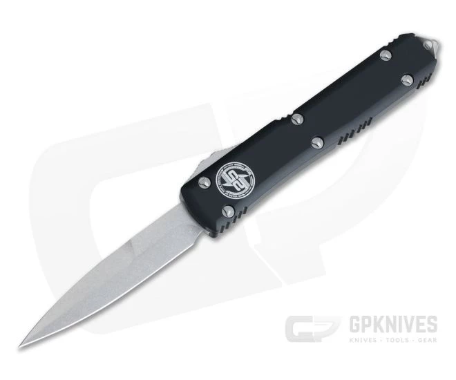 The Ultratech Blade Show 2019 edition dual action out the front automatic knife from Microtech sets the standard for the category. This version has a Black contoured handle and stonewashed Bayonet blade.