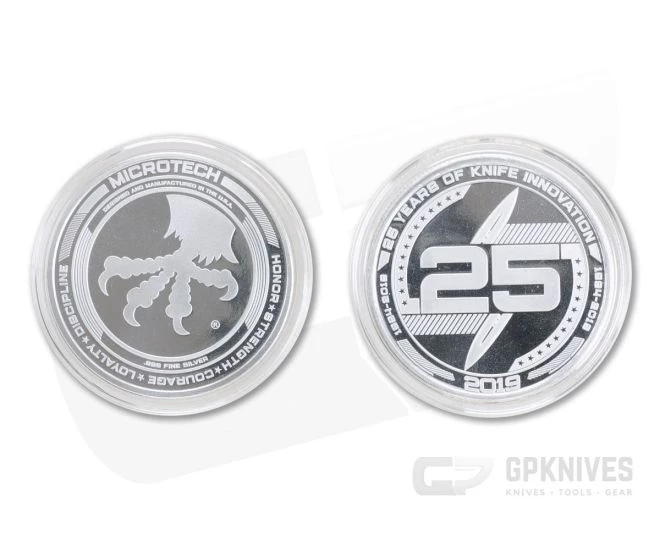 In celebration of Microtech’s 25th anniversary, the Blade Show Special is a commemorative Ultratech Bayonet and includes an exclusive .999 1 oz Silver commemorative challenge coin.
