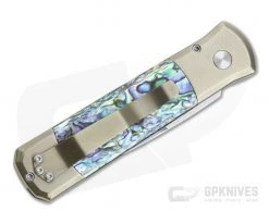 Protech Godson Titanium Custom Automatic Satin Blade Bronze Anodized Frame Mosaic Abalone Inlays