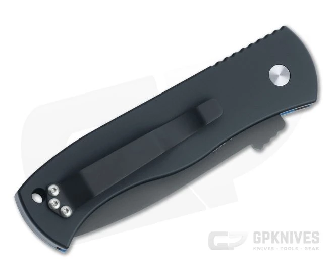 Emerson Knives has teamed up with Protech to offer a high quality production automatic version of the Emerson CQC-7, an American made automatic with quality design and high-tech production in an affordable platform. The fame is made from black hard anodized 7075 aluminum for lightweight durability while the blade is 154CM stainless steel for great all-around performance. This is a high quality collaboration that brings the best elements of Emerson design and Protech manufacturing to a single knife. This version features a black DLC Tanto blade, custom blue and black crosscut G-Carta top and Mother-of-Pearl button inlay.