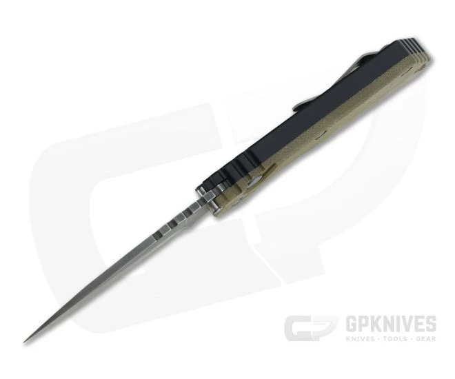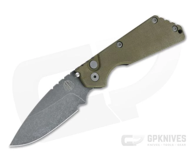 GPKnives has teamed up with Protech to offer an exclusive version of the Protech/Strider SnG, an American made automatic with quality design and high tech production in a highly affordable platform. Black hard anodized 7075 Aluminum is super tough and forms the foundation of the knife, supporting a smooth Green Micarta top and an Acid Wash finished 154cm stainless steel blade for exceptional, all-around performance. The Pro-Strider SnG auto is a high quality collaboration that brings the best things from the SnG design and Protech’s manufacturing to a single knife. GPK Exclusive with Green Micarta top, available while supplies last!