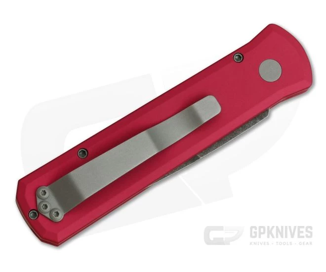 The Protech Knives Godson is a utilitarian, compact, every-day-carry version of the Godfather, retaining the classic design lines inspired by traditional Italian folding Stilettos. The Godson has the same American innovations as the Godfather, featuring modern materials, high tech manufacturing, advanced coil spring mechanism, and quality American production. This GPKnives Exclusive model of the Godson has a tumbled, Acid Wash finished 154cm stainless plain edge blade, Red Hard Anodized aluminum handles and blasted hardware.