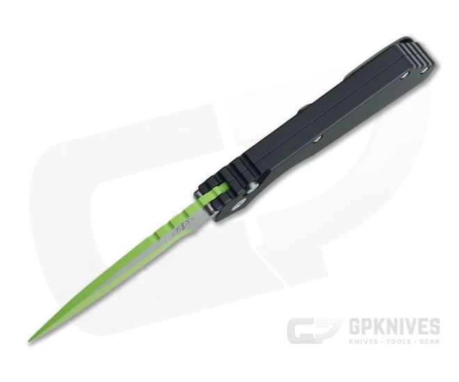 Blade: The iconic Strider PT drop point design is made from 154CM stainless steel and finished with satin flats and toxic green Cerakote grinds/spine. 154CM is an excellent working steel proving a good mix of edge retention, corrosion resistance, toughness, and ease of sharpening. The mid-height saber grind offers a good mix of strength and slicing performance that is inline with the Strider design. The blade deploys smooth and fast via a button operated coil spring mechanism. Strider logo has been lasered on the front side with Protech logo on backside of blade.