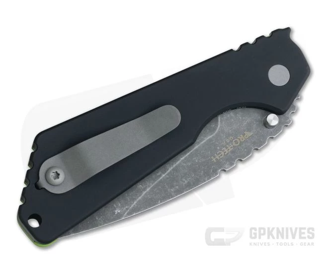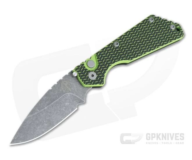 One of our favorite collaborative efforts stepped up their game for the USN Gathering XI in this Custom Edition Protech Strider SnG! Protech blends their high tech production with Strider’s iconic design as well as some USN toxic green to form this 50 piece Limited Edition. Features layered black/green G10 presentation side and black anodized aluminum backside and integral backspacer as well as a 154CM Darkened Acid Wash Blade.