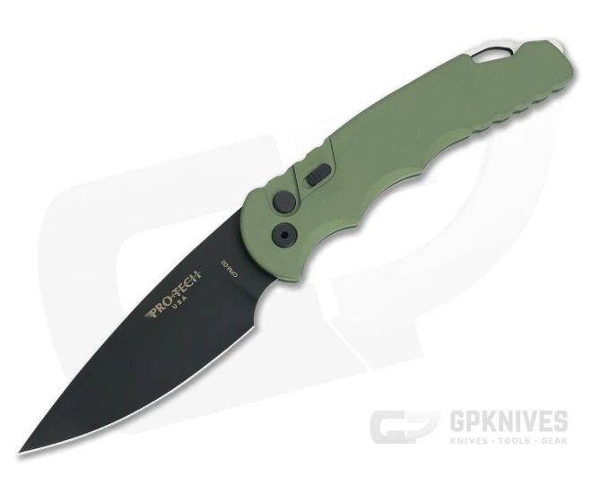 The Protech Tactical Response TR-4.3 is a full-size, tactical, button lock automatic that is durable, comfortable, lightweight and fast in the hand. The saber ground, drop point blade is simple and functional for both utility and martial use. This limited edition version comes with a CPM-D2 tool steel blade with black DLC coating and Green hard anodized aluminum handles.