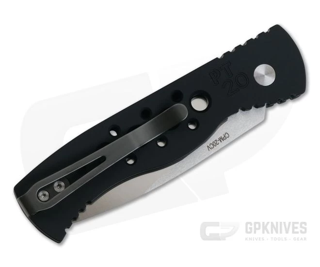 The Protech Tactical Response TR-2 is a full-size, tactical, button lock automatic that is durable, comfortable, lightweight and fast in the hand. It won’t weight you down thanks to the sub-4 oz. carry weight . The spear point blade excels at slicing and piercing tasks lending this knife to utility and martial use. This Limited, 20th Anniversary Edition comes with an “Original” skeletonized, black hard anodized aluminum handle and satin finished CPM-20CV Spear Point Blade with black lip mother of pearl inlaid button.