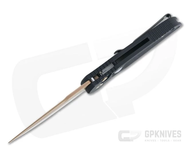 Year after year the Protech Tactical Response 3 is one of the most popular knives with law enforcement and military personal. Trusted by the most elite military on the planet, the TR-3 is a thoughtfully designed automatic knife that is slender and easy to carry. This limited, 20th Anniversary Edition of the TR-3 comes with black “Super Grip” aluminum handles and Rose Gold coated blade and hardware.