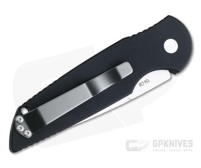 Blade: The drop point blade is made of American 154CM stainless steel providing a great balance of performance and ease of maintenance for excellent everyday performance. Offering exceptional slicing performance with balanced durability the high height saber grind has a prominent top swedge that delivers powerful piercing performance. The plain edge blade is equipped with a two-tone satin finish, vertical on the grinds and horizontal on the flats, for a classy look and deploys via a push button operated coil spring mechanism that is fast and smooth for easy one-handed operation.
