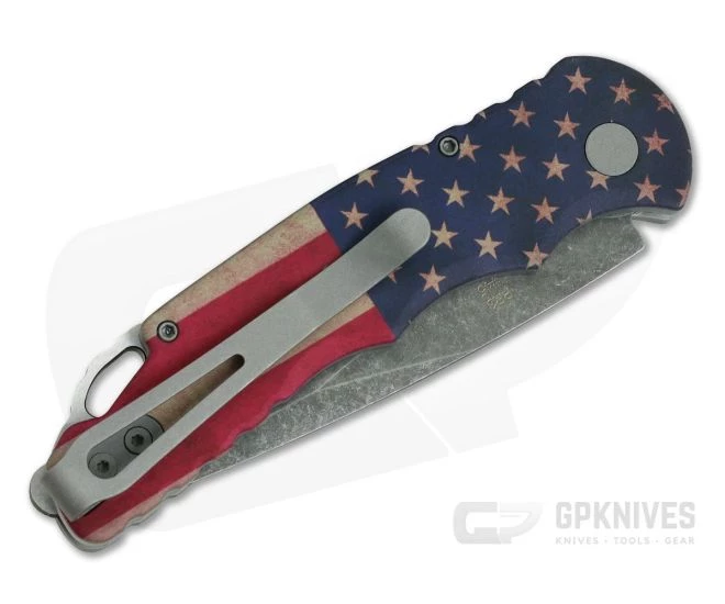 The Protech Tactical Response is a full-size, tactical, button lock automatic that is durable, comfortable, lightweight and fast in the hand. A sub-4 oz. weight makes carry a breeze. The drop point S35VN blade is simple and functional for both utility and martial use. This GPKnives Exclusive version comes with a custom Vintage Flag hard anodized aluminum handle and Acid Washed CPM S35VN Blade.