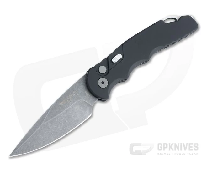 The Protech Tactical Response 5 is a full-size, tactical, button lock automatic that is durable, comfortable, lightweight and fast in the hand. A sub-4 oz. weight makes carry a breeze. The drop point S35VN blade is simple and functional for both utility and martial use. This GPKnives Exclusive version comes with a black hard anodized aluminum handle and Acid Washed CPM S35VN Blade.