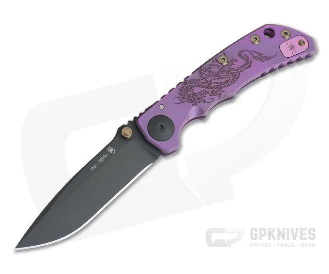 The 2016 “Overall American Made Knife of the Year” award winner Spartan Harsey Folder is now available in a special edition purple anodized, “Dragon” graphic. This version features a black PVD coated CPM S35VN blade with an amazing engraved handle: Purple anodized engraved Dragon graphics adorn the front and back complemented by bronze anodized hardware. This collaborative effort features Bill Harsey’s signature styling combined with premium materials and Spartan’s precision fit & finish. Mid-large in size, the folder is very comfortable in-hand and ready for hard use.