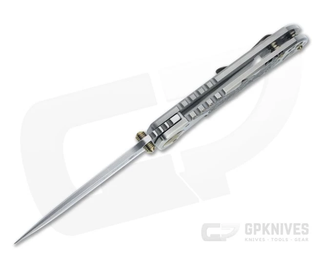 Handle: Ergonomic handles have been constructed from satin rub 6AL4V titanium with deep, black engraved graphics along with a Spartan engraved clip insert. Anodized titanium barrel spacers, handle screws and custom pivot complete the construction. The back titanium slab forms an integral frame lock mechanism for reliable lock-up in hard use conditions with oversized pivot lockbar stabilizer.