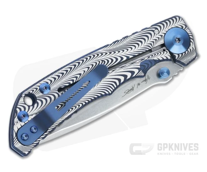 Winner of the “Overall American Made Knife of the Year” for 2016, the Spartan Harsey Folder is now available in a special edition “Sound Wave” graphic. This collaborative effort features Bill Harsey’s signature styling combined with premium materials and Spartan’s precision fit and finish. Comfortable in-hand and ready for hard use this version features a stonewashed S45VN blade, satin finished titanium handles and deep, elaborate engravings: dual “sound wave” graphics front and back with blue anodized details.