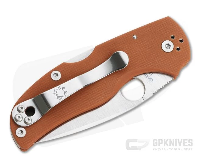 Handle:Â Lightweight, durable and weatherproof Burnt Orange G10 composite strikes a good balance between weight and durability with built-in peel ply texture for traction in the hand. Reliable and built for serious use in mind the Native 5 is equipped with Spyderco’s beefy mid-back lock that is smooth to operate, ambidextrous and rock solid. Thick enough for good rigidity, this Native 5 does without steel liners for reduced weight without compromising strength.