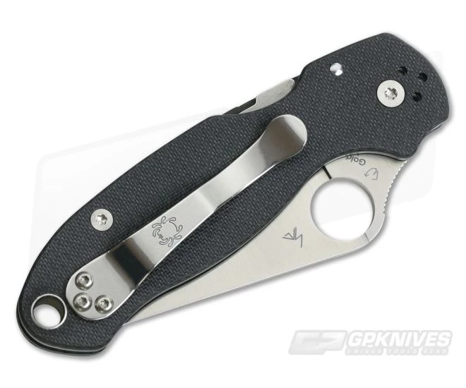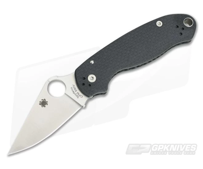 The Blade: Fully flat ground, high performance CPM-S90V has been ground into a Para-like shape with plain edge for general slicing needs. See more on S90V below. Fully satin finished with iconic SpyderHole opener and jimping at the thumb rest and half choil.