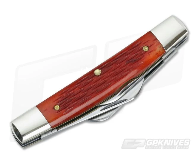 The Tidioute #61 4 Blade Congress with Fall-themed Burnt Orange jig bone will make an excellent addition to any collection. Only 50 pieces were made in this run as each is Serialized on its primary bolster. This is a handy worker or elegant show piece with its four satin blades. The lightly jigged bone has just the right amount of texture.